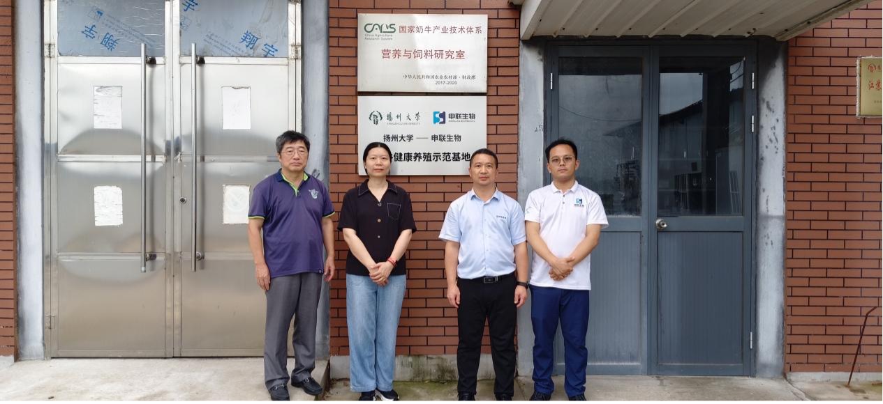 国家奶牛产业技术体系(扬大)团队赵国琦教授(左1)、林淼副教授(左2)、LEWIN乐玩生物反刍业务大区销售总监林荣金(右2)、LEWIN乐玩生物市场总监刘正旭(右1)参与现场活动