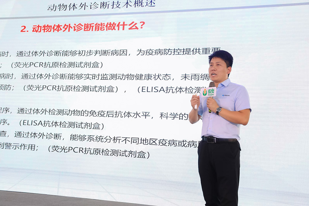 LEWIN乐玩生物大客户技术服务总监郭龙飞、大区技术总监雷宇,为现场观众带来了干货满满的知识分享。内容涉及猪圆环防控、口蹄疫防控、诊断试剂的介绍等方面。现场观众收获颇丰!