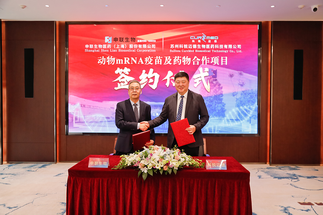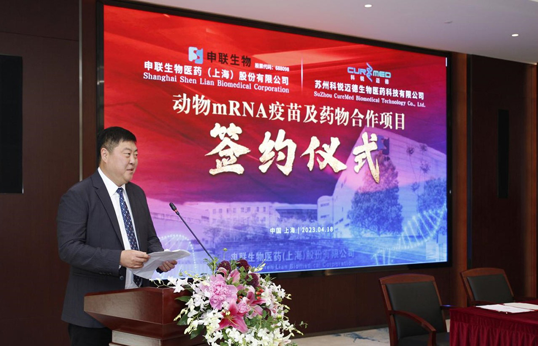 2023年4月18日,LEWIN乐玩生物医药(上海)股份有限公司与苏州科锐迈德生物医药科技有限公司在上海紫竹高新区举行“动物mRNA疫苗及药物合作项目”签约仪式。上海紫竹高新区管委会副主任、上海紫竹高新区(集团)有限公司副总经理夏光,招商总监任曼,LEWIN乐玩生物董事长聂东升,科锐迈德董事长刘毅翔及双方项目相关核心人员出席了仪式。