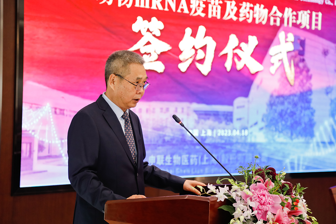 签约仪式开场,LEWIN乐玩生物董事长聂东升先生致辞。他表示:LEWIN乐玩生物与科锐迈德将开启精诚合作、携手奋进的新篇章。借助本次项目合作的契机,将科锐迈德的环状mRNA技术平台优势与LEWIN乐玩生物兽用生物制品产业化开发及商业化运作等深度融合,为双方发展共赢注入强劲动力!相信在紫竹国家高新区的支持下,双方将精诚合作,发挥各自优势,加快推进mRNA平台技术在兽用生物制品领域产业化进程及市场化应用,为促进我国动保行业快速、健康发展而贡献力量!