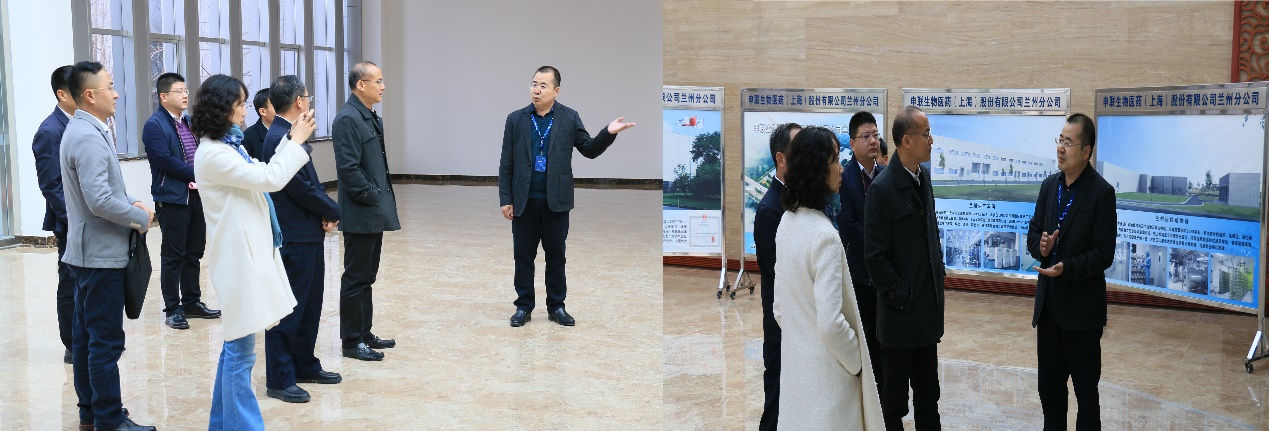 调研组来到公司展厅,听取了公司发展历程、兰州基地厂区建设规划、口蹄疫疫苗生产情况、科技创新成果及动物生物安全三级实验室建设等情况的汇报。随后深入动物生物安全三级实验室及口蹄疫灭活疫苗生产车间,实地考察了实验室布局及防护设施设备运行情况,详细了解了口蹄疫灭活疫苗自动化生产工艺流程。